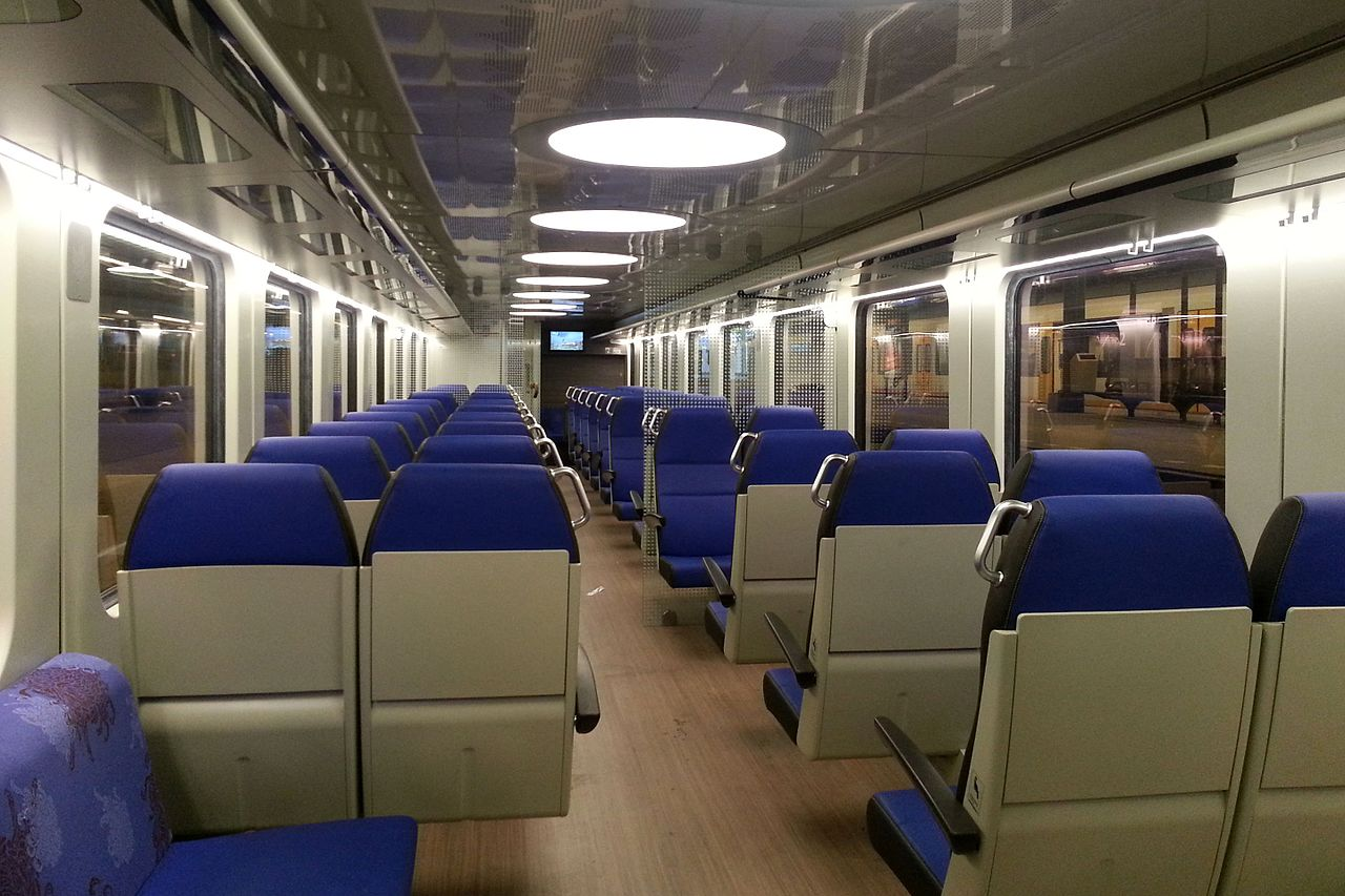 22. Interieur, 2e klas motorrijtuig, van de Nieuwe Intercity Dubbeldekker (NID), met indelingen in zones.