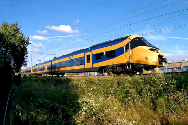 Blokpost Bunnik, 1 juli 2020. Met een welgemeende tyfoongroet passeerde NS ICNG 3103 de blokwachter (geheel links te zien) tijdens een proefrit. Foto: Nico Spilt /nicospilt.com - Licentiestatus: GNU Free Documentation License.