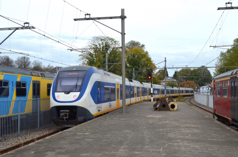 5. Twee vierdelige treinstellen type SLT nr. 2401-2469 op de pendeldienst tussen Station Utrecht Centraal en het Spoorwegmuseum vertrekken van Station Utrecht Maliebaan. Datering: 26 oktober 2017. Foto: Eriksw - nl.wikipedia.org