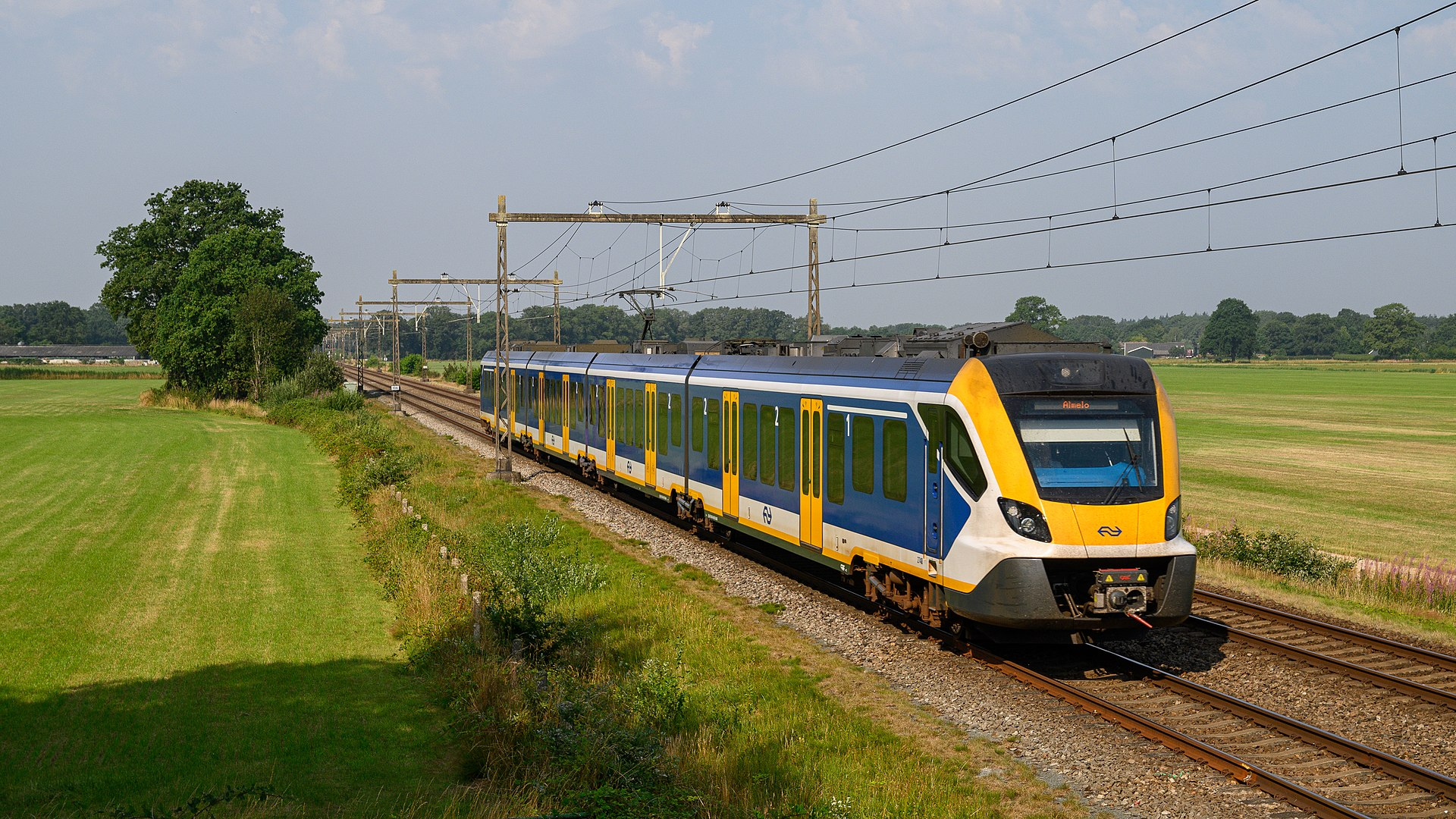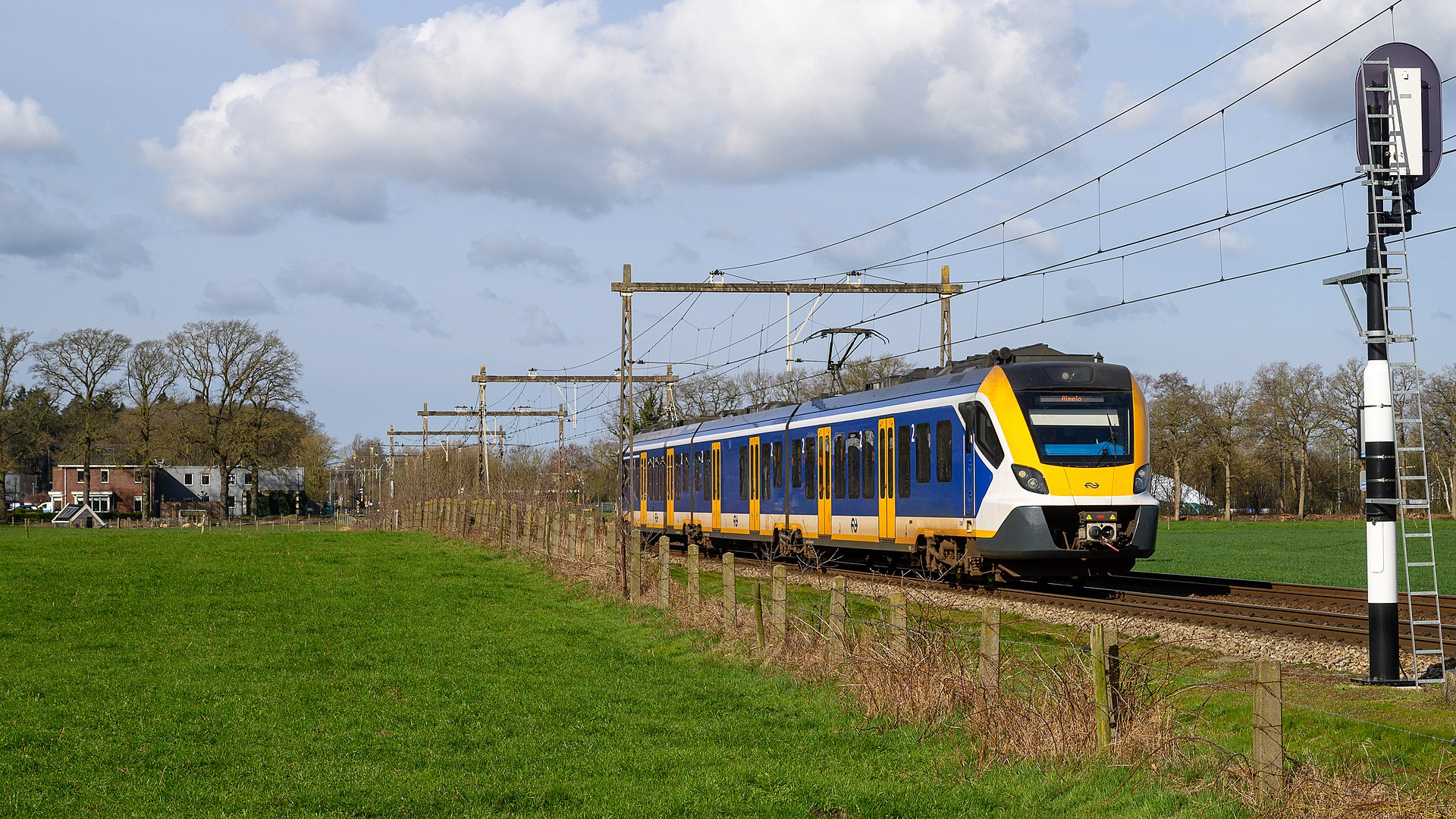 15. Op een zonnige dag komt bij Holten NSR SNG 2733 als Sprinter 7046 naar Apeldoorn voorbij.
