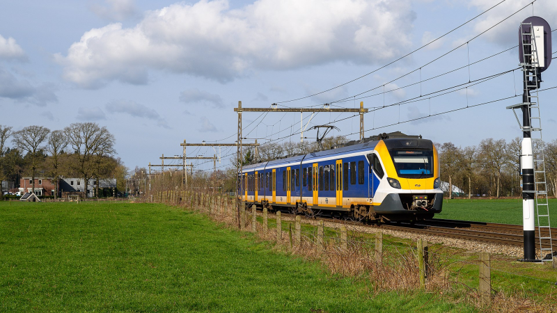 8. Een bijzondere verschijning op de Twentelijn trof ik aan bij Bathmen, maart 2020. Tussen alle oude SGMm treinstellen riet een nieuwe SNG 2713. De vreemde eend in de bijt reed als Sprinter 7062 van Enschede naar Apeldoorn. Datering: 26 maart 2020.