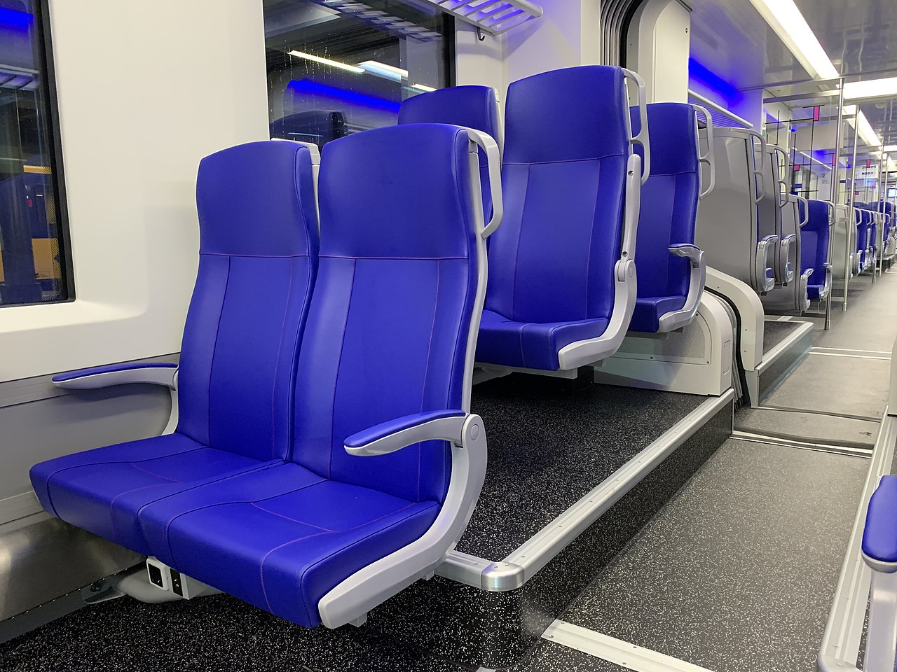 12. Het interieur, 2e klasse met stoeltype Fainsa Sophia, van het SNG treinstel NS 2711 op station Den Haag Centraal, voor aanvang van de eerste dienst. Datering: 12 november 2018. Foto: Stadsbus - nl.wikipedia.org - Licentiestatus: CC BY-SA 4.0