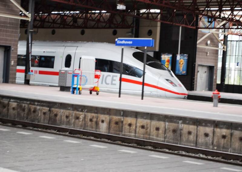 1.5. NS Station Eindhoven: Op spoor 4b staat de hogesnelheids trein ICE nr. 4611 'Düsseldorf'. Datering: 20-07-2013.