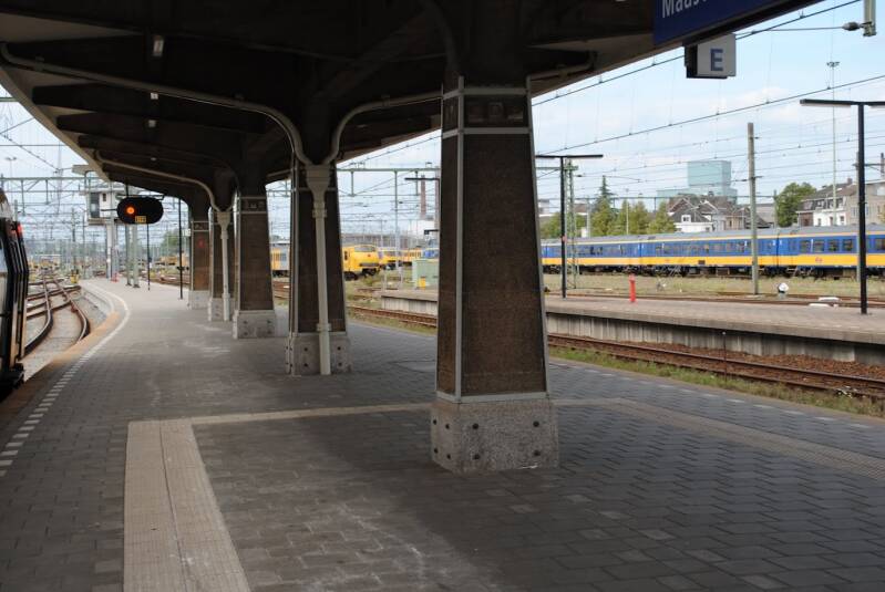 2.1. Een van de perrons van NS station Maastricht met zicht op het emplacement. Datering: 10-08-2011.