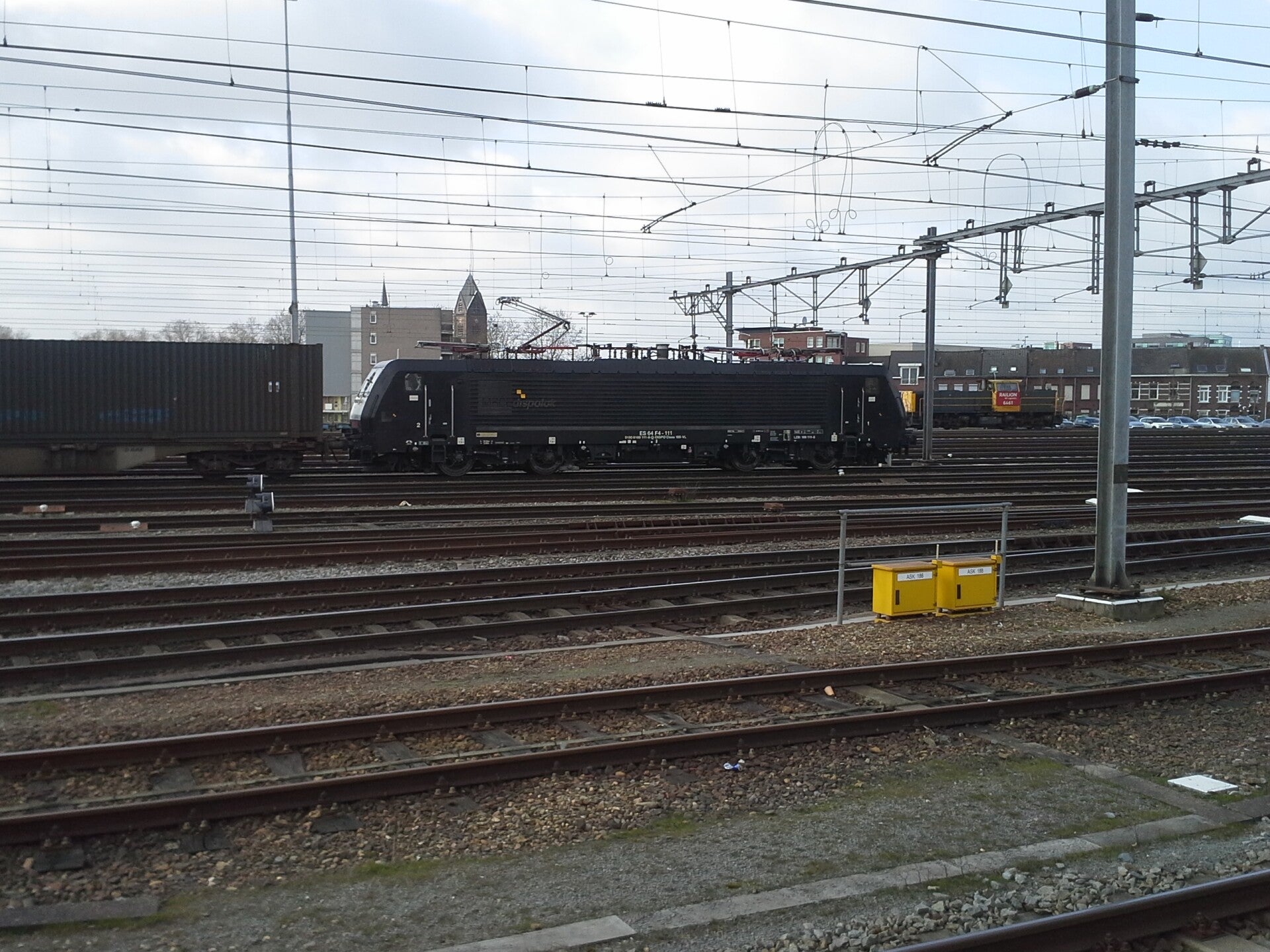 2.2. NS Station Venlo: Een MRCE Dispolok met goederentrein aan de haak op het emplacement ter hoogte van het station. Geheel op de achtergrond diesel-electrische locomotief Railion 6461 (uit de serie MaK DE 6400). Foto: Leo Lambrechts - eigen werk.