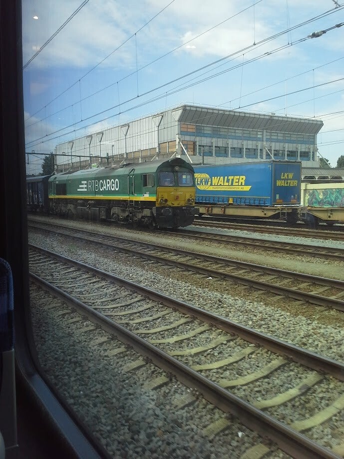 1.3. Spoorwegemplacement NS Sittard: Diesel-electrische locomotief van RTB Cargo met goederentrein aan de haak op het emplacement van Sittard. Datering: 10-07-2017. Foto: Leo Lambrechts - eigen werk. Licentiestatus: Vrij herbruikbaar - CC0 1.0