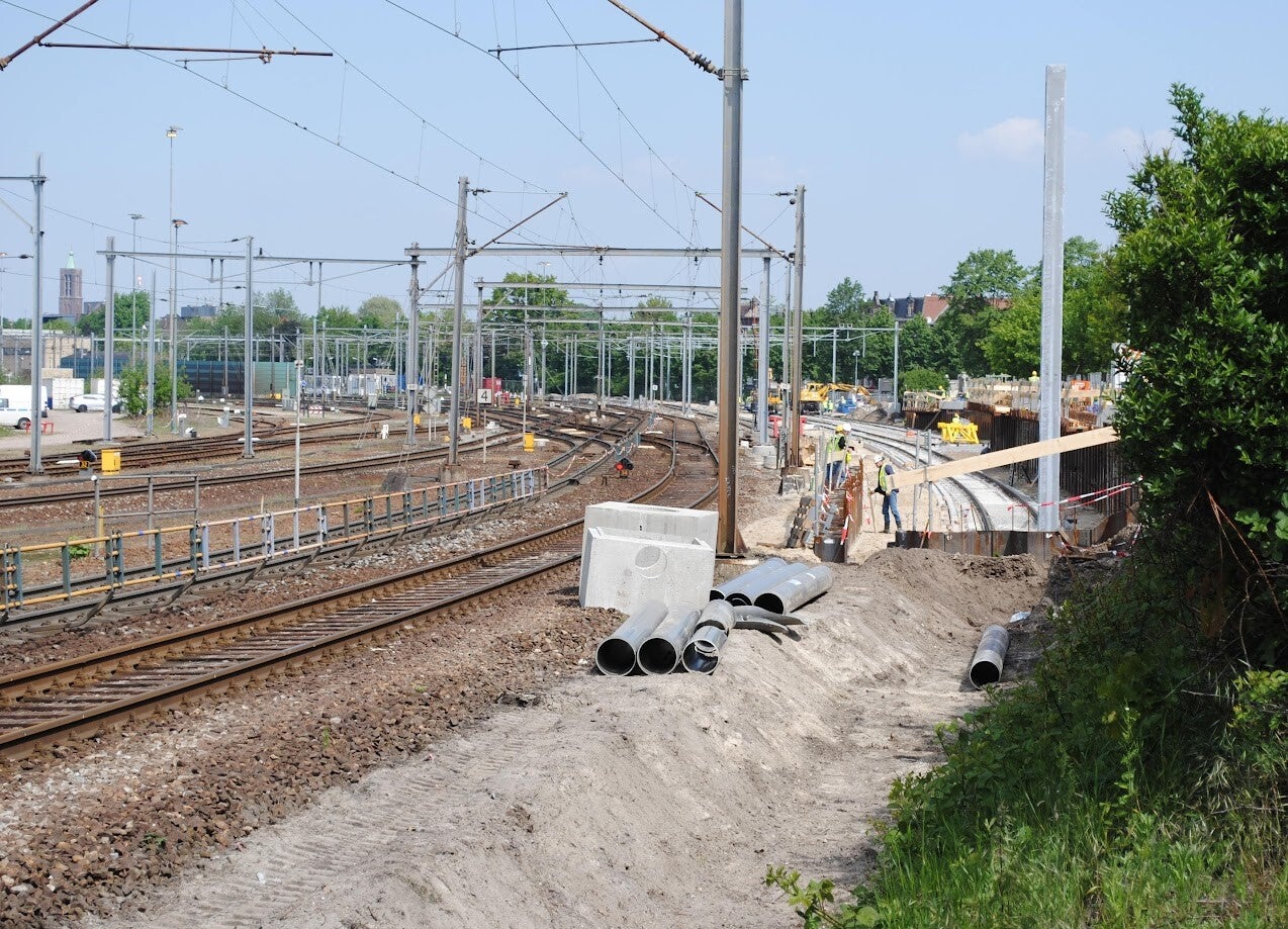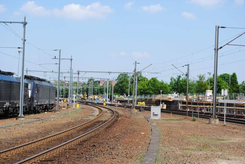 1.7. Spoorwegemplacement Venlo: Werkzaamheden nieuwe was- en reinigingsplaats voor treinen en geluidsscherm. Overzicht van de bouwplaats II. Datering: 27-05-2013. Foto: Eigen werk. Licentiestatus: Vrij herbruikbaar - Publiek Domein