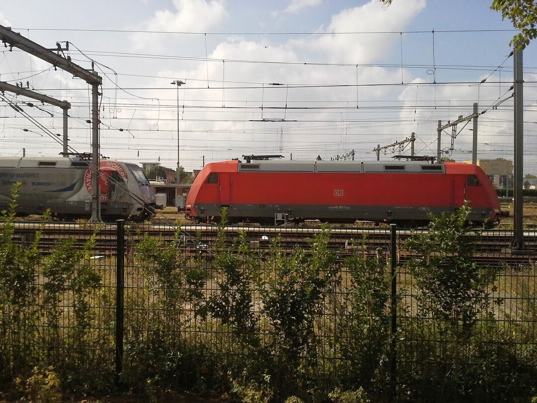 7.2. Spoorwegemplacement NS Venlo: E-loc DB 101 107-1 en een DB loc met o.a. de tekst '60 Jahre Bundespolizei' op het emplacement van Venlo. Datering: 14-09-2014. Foto: Leo Lambrechts (eigen werk). Licentiestatus: Vrij herbruikbaar - Publiek Domein