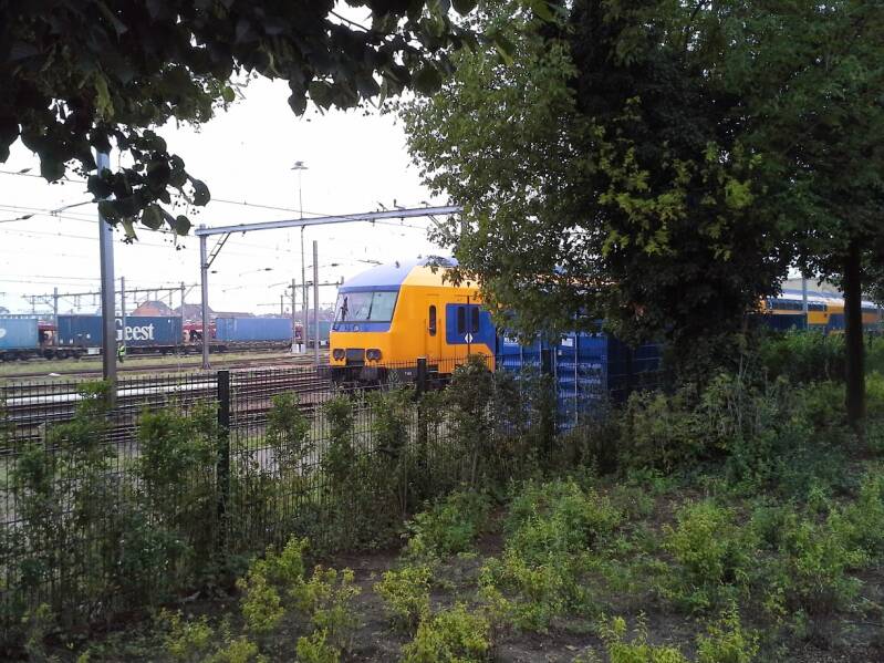4.11. Spoorwegemplacement NS Venlo: Het emplacement gezien vanaf de Kaldenkerkerweg Venlo. Links zien we een NID treinstel (Nieuwe Intercity Dubbeldekker) in afwachting van haar inzet. De term DDZ werd echter de gebruikelijke aanduiding voor dit materieel. Datering: 14-07-2014. Foto: Eigen werk. Licentiestatus: Vrij herbruikbaar - Publiek Domein