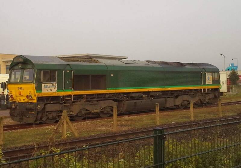 11.5. Spoorwegemplacement NS Venlo: Diesellocomotief V 264 PB1 van de Rurtalbahn Cargo op het opstelspoor ter hoogte van de overweg Vier Paardjes Venlo. Datering: 20-11-2014. Foto: Leo Lambrechts (eigen werk).