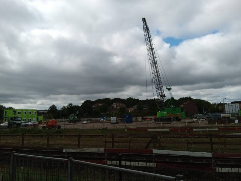 7.2. Spoorwegemplacement NS Venlo: Werkzaamheden t.b.v. onderdoorgang Vierpaardjes. Het bouwterrein aan de oostkant van de huidige sporen, gezien vanaf de huidige overweg Vierpaardjes Venlo. In de verte zien we nog juist het Venlose emplacement. Datering: 17-10-2023. Foto: Leo Lambrechts (eigen werk). Licentiestatus: Vrij herbruikbaar - Publiek Domein