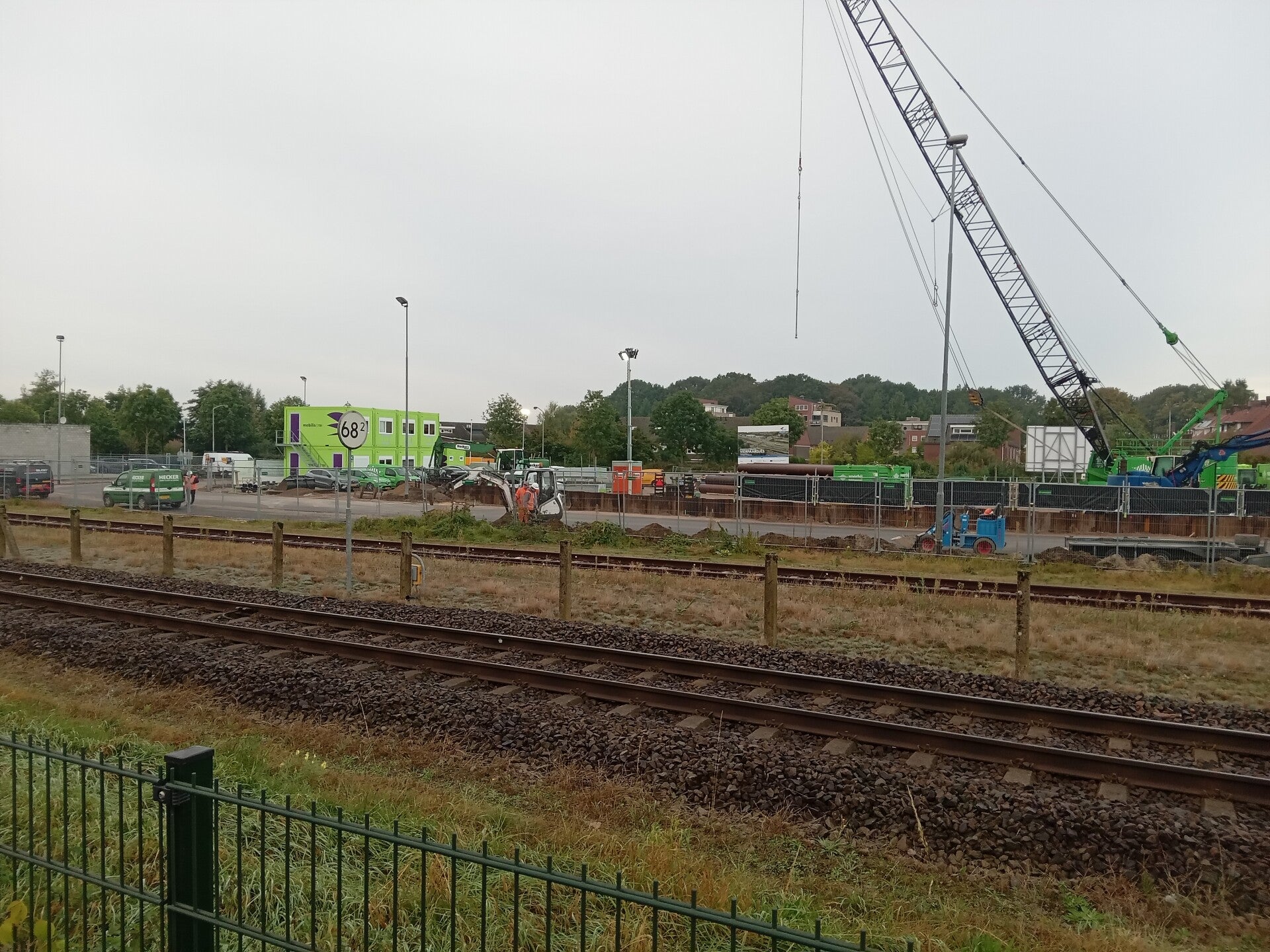 6.9. Spoorwegemplacement NS Venlo: Werkzaamheden t.b.v. onderdoorgang Vierpaardjes. Het bouwterrein aan de westkant van de huidige sporen, gezien vanaf de Broekestraat Venlo. Datering: 05-10-2023.
