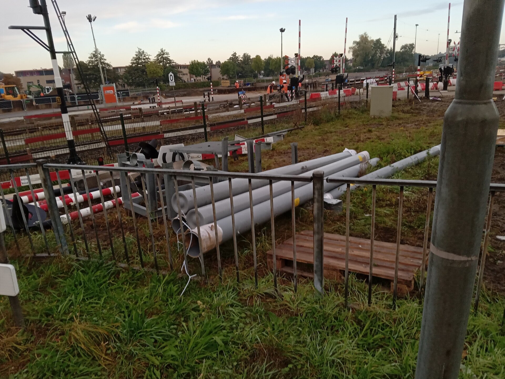 7.9. Spoorwegemplacement NS Venlo: Werkzaamheden t.b.v. onderdoorgang Vierpaardjes. In de buurt van de kleine overweg Vierpaardjes/Onderste Molenweg Venlo zien we het afgedankte overwegmateriaal liggen. Datering: 17-10-2023.