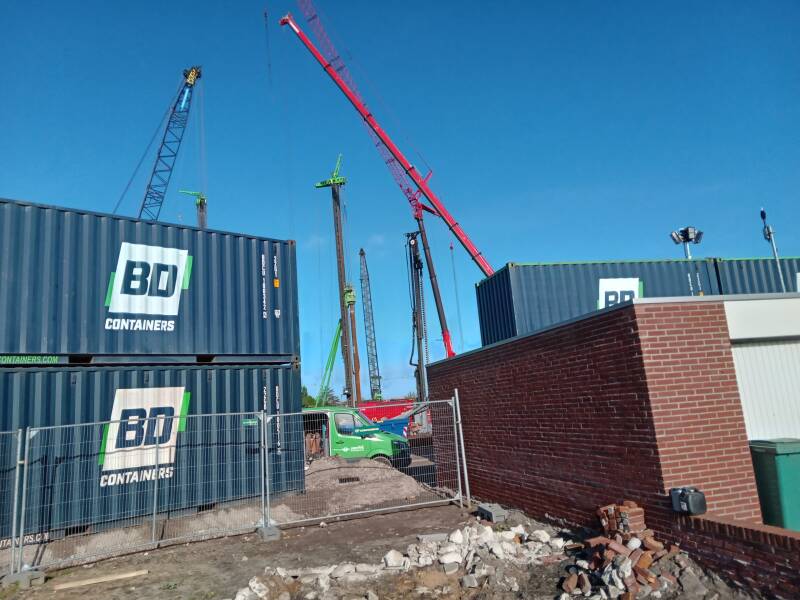 • Om de overlast tijdens de gehele afsluiting zo veel mogelijk te beperken, is een tijdelijke geluidswal (in de vorm van containers) geplaatst op de plek van de voormalige Vierpaardjes woningen.